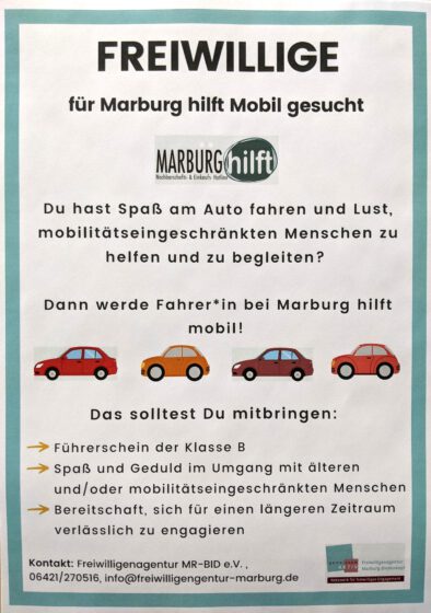 Wir freuen uns über Ihre Anmeldung als Freiwillige*r für die Alltagsunterstützung auch als Fahrer bei Marburg hilft Mobil!